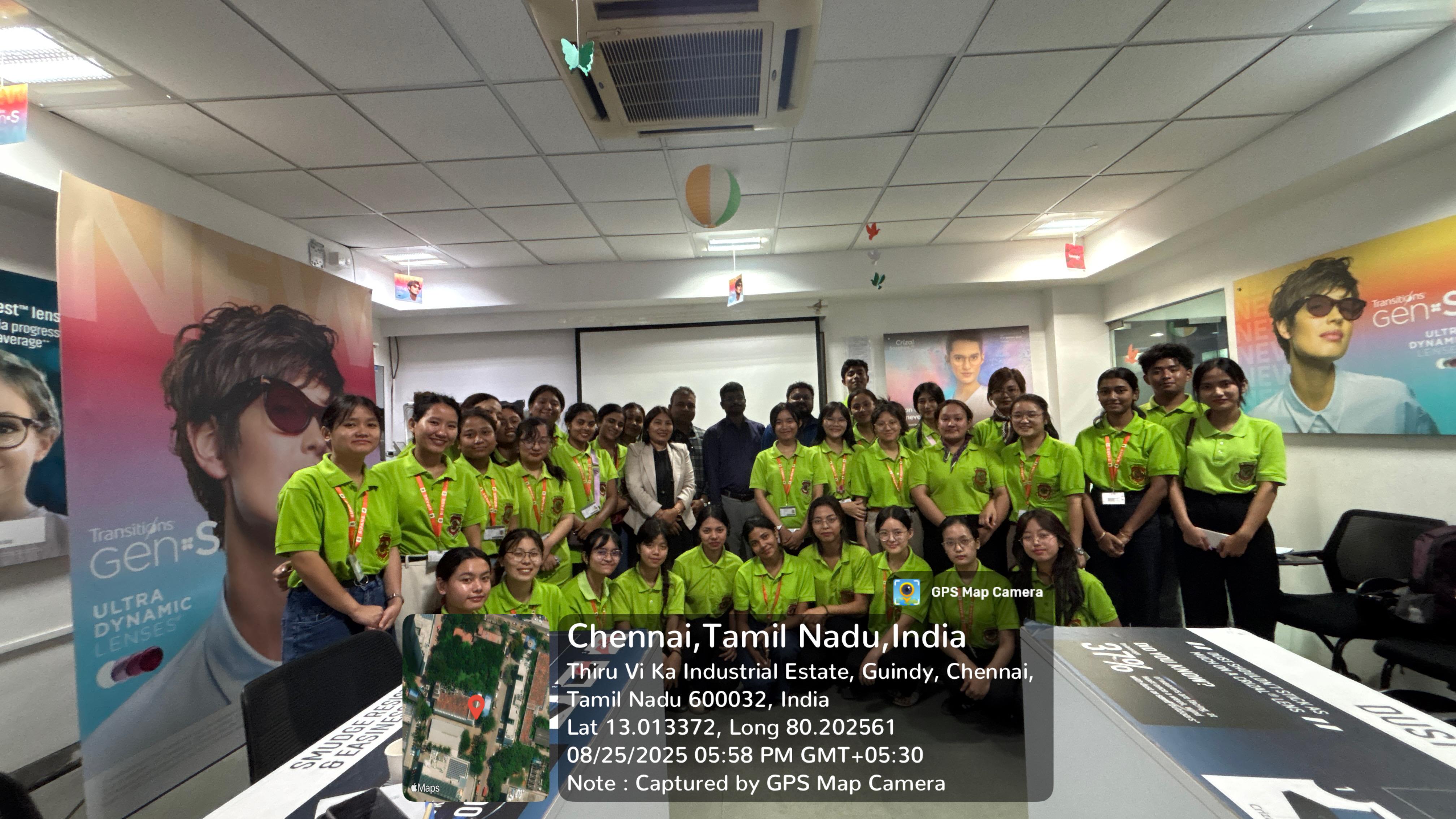 Students and faculty from the Department of Optometry had the privilege of attending the EIVOC Conference 2025 in Chennai, which brought together professionals from around the world. The conference featured sessions on women in optometry, global practice, myopia control, public health, and sports optometry, alongside poster presentations and student quizzes. One of our students won 1st prize in the solo song competition, and our team received the 2nd highest attendance award.As part of the exposure visit, students visited leading institutions including Sankara Nethralaya (18 Aug), Dr. Agarwal’s Eye Hospital (19 Aug), Essilor Luxottica Lens Facility (20 Aug), and Aravind Eye Hospital (20–21 Aug), gaining hands-on experience in clinical and industrial optometry. The visits included rotations through multiple specialty departments and practical demonstrations of diagnostics, treatment, and manufacturing processes.On 23rd August, students visited Aurolab, Madurai, where they observed the production of intraocular lenses and surgical instruments. The program concluded with local visits in Chennai before returning to Aizawl on 29th August 2025.The entire program was a valuable academic and professional experience, bridging classroom learning with real-world practice.